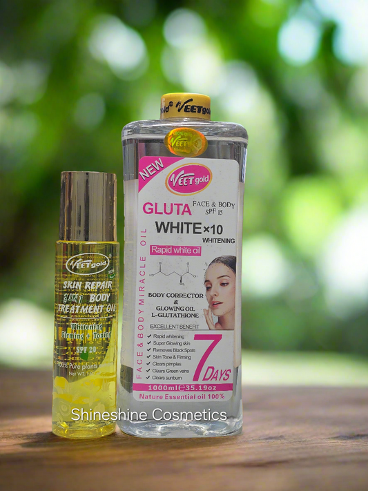 Veet Gold Gluta White Body Corrector Whitening Oil & Veet Gold 3 in 1 Skin Correcting Glow Oil