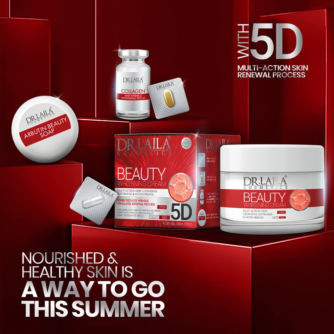 Reveal your most luminous skin with Dr. Laila 5D Whitening Beauty Cream—your secret to a flawless glow! ✨