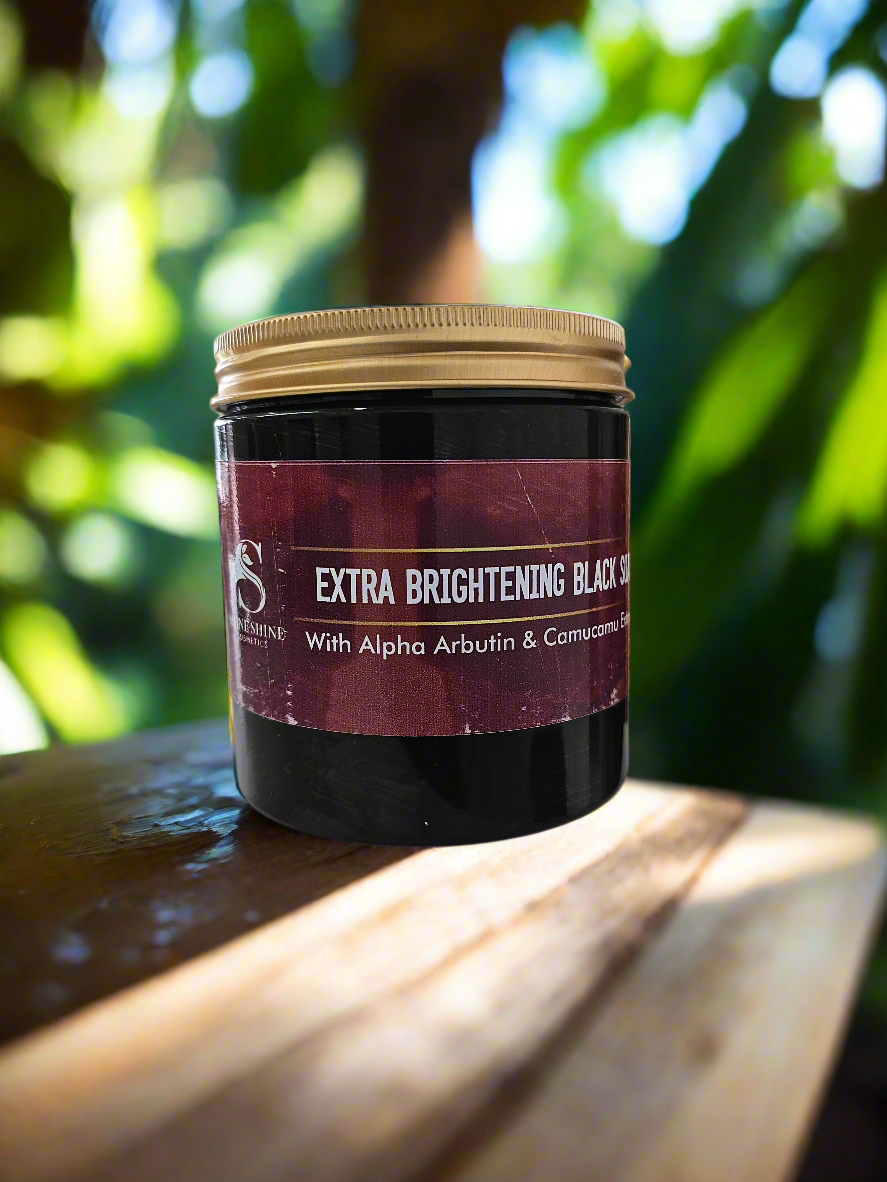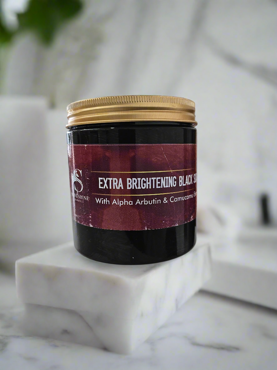 Our Extra Brightening Black Soap is formulated with powerful natural ingredients like Alpha Arbutin and Camu Camu extracts to help you achieve a brighter, more even complexion. This luxurious soap deeply cleanses, exfoliates, and nourishes your skin, leaving it soft, radiant, and refreshed.