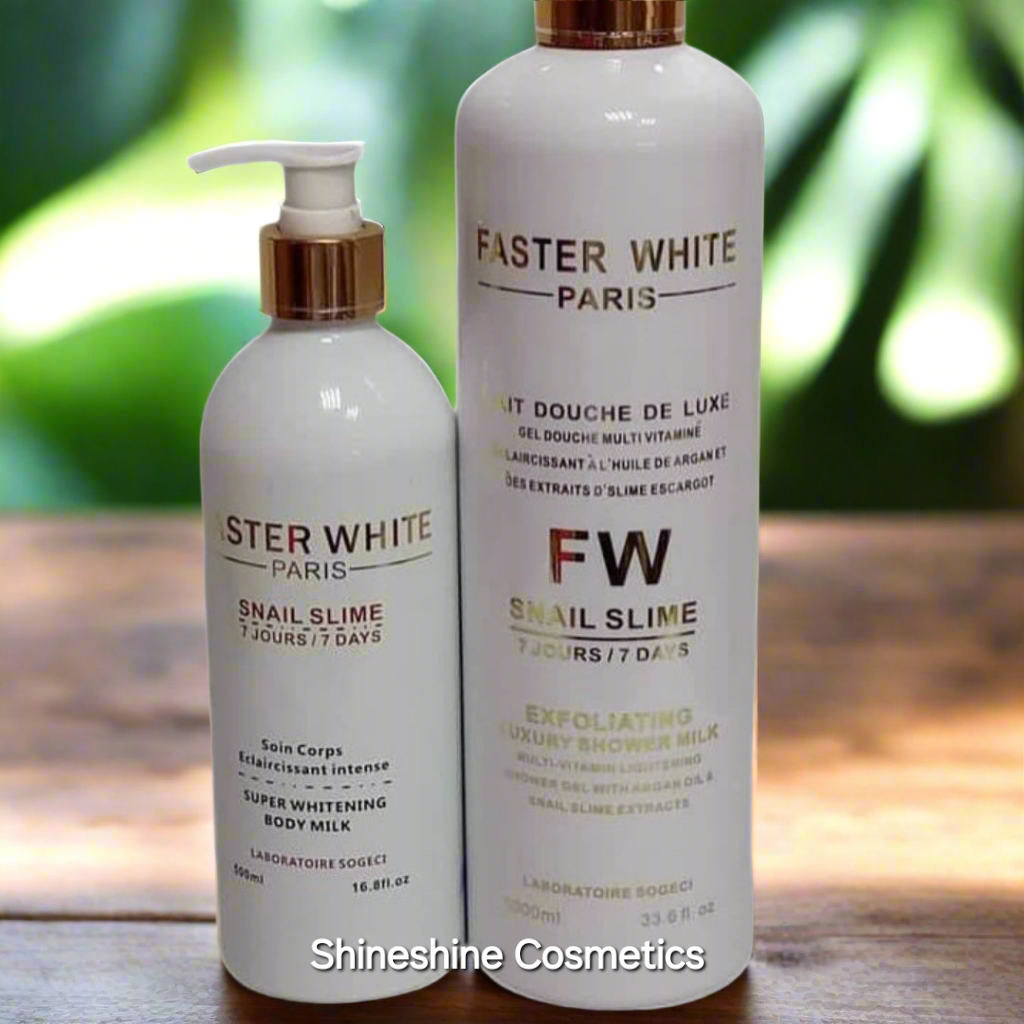 This Faster White Snail Slime Super Lightening Lotion and Shower Gel is a powerful skincare duo designed to brighten and hydrate the skin.