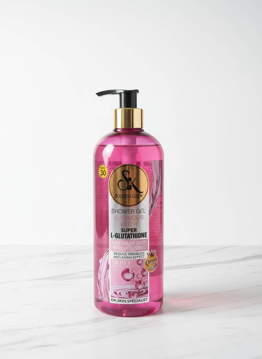 Indulge in the royal glow you deserve with SK Duchess Glow Luminous Glow Glutathione Shower Gel — a rich, creamy body cleanser infused with skin-brightening and antioxidant-rich ingredients. Formulated with Glutathione, Vitamin C, Niacinamide, and Kojic Acid, this luxurious shower gel deeply purifies the skin, gently fades dark spots, and reveals a luminous, even-toned complexion.